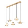 Embrace the optically pleasing design of a five-light linear chandelier with a versatile motif and a warm modern gold finish over steel construction. Two-part luminaires interrupted by flat discs infuse LED lighting through frosted acrylic diffusers, giving the option of mood-changing with dimming features.