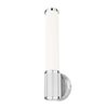 Gleaming in modern chrome, this contemporary one-light LED wall sconce is a charming choice for a contemporary living space or bath. It features a vertical silhouette with a fluted steel cuff and a cylinder of white opal glass that softly diffuses illumination. The LED is integrated, delivering energy efficiency in an eco-friendly home.