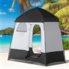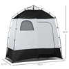 This portable shower tent from Outsunny works as a shower, toilet enclosure or as a changing room. It has a PU (polyurethane) coating on the surface to protect from water and sun as well as to provide added privacy. The zippered door allows easy access and the zippered windows offer good airflow. This camping tent includes a carry bag for easy transport and storage. It comes with a PE (polyethylene) mat for water drainage.