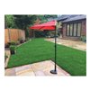 This half umbrella is perfect for small spaces or patio decks. It has a black aluminum pole and frame, a crank, and a red cover. It is recommended to use it with a haf base umbrella.