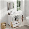 Vanity Art presents a premium Bathroom Vanity Cabinet, a must-have addition for any homeowner looking to combine functionality and style in their bathroom space. Crafted with precision, this cabinet vanity for the bathroom is constructed using moisture-proof solid + manufactured wood, ensuring durability and sturdiness that will withstand the test of time. The ceramic top surface not only adds an elegant touch but also provides a reliable and easy-to-clean surface, making it perfect for daily use. Included with each cabinet is a matching wall mirror, featuring a sleek square design that complements the vanity bathroom cabinet's colour, adding a cohesive and sophisticated look to your bathroom. With ample storage space, the bathroom cabinet with sink offers a convenient shelf on top of dovetail drawers and customizable options for additional drawer units.