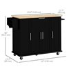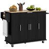 HOMCOM 36 H x 52 L x 18-in W Black MDF Base with Solid Wood Top Rolling Kitchen Island