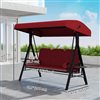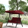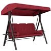 Outsunny 3-Seat Outdoor Swing Bench w/ Canopy and Side Tables - Wine Red