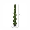 Vickerman Artificial Boxwood Topiary Spiral Tree 6 Foot Tall Potted. Introduce an eye-catching and low-maintenance accent to your home decor with this 6-foot tall Vickerman Artificial Boxwood Topiary Spiral Tree. Its natural green boxwood leaves and the spiraled design of its trimmed foliage make it a sophisticated and modern option to incorporate some greenery to your indoor or outdoor living spaces. This artificial topiary tree is made of high-quality materials that are UV-resistant, making it a perfect choice for your front door, patio, or any other area that's exposed to sunlight. The potted design of this faux boxwood plant makes it easy to display, and its realistic look will make it hard for anyone to tell it's not a real plant. This artificial topiary is an excellent option if you want to add some greenery to your home without the hassle of maintaining real plants. Ideal for both indoor and outdoor use, this UV-resistant topiary tree is perfect for those who love artificial topiaries, topiary trees, and faux boxwood plants.