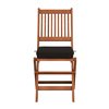 This pair of PEX-369-C folding chairs from Corlving® welcome back the days of Mission design, which was popularized in the Southwest during the early 20th century. The contemporary approach to this classic aesthetic sets this stylish bistro chair apart, showcasing it's clean lines and emphasis on the wood grain. The durable wooden frames have been treated to withstand the elements while the black cushions offer additional comfort. These chairs fold up for easy storage in the off-season months.