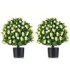 Costway Artificial Plant 2-Pack Boxwood Topiary Ball Tree Faux Shrub Bush - White