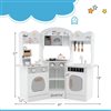 Featuring a coffee station, a fully operational stove, and interactive lights and sounds, this playset provides a realistic play cooking experience experience. With multiple integrated appliances and ample storage, children can explore endless opportunities for creativity. Safety is ensured with splinter-free surfaces and rounded corners. This corner kitchen playset is more than just a toy; it's a comprehensive playset that stimulates imagination, cultivates creativity, enhances hands-on skills, and builds self-confidence. It's an ideal gift for children aged 3 and up, aiming to foster their development while they play.