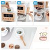 - Immerse your little chefs in a realistic culinary world with this wooden play kitchen, featuring an intricately designed coffee station and fully operational stove