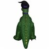 Turn heads with this animated Airblown Inflatable dinosaur! Styled with printed green fabric and wearing a witch hat, the Halloween T-Rex turns his head side to side. Accented with a jack-o'-lantern in his chompers, the animated Halloween dinosaur makes a spooktacular addition to indoor or outdoor decorations. Setup is super simple. Just plug it in, stake it down and watch the magic unfold. Be the talk of the block with an animated T-Rex Halloween inflatable! Includes everything needed for easy setup.