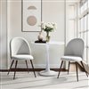 Elevate your dining area with the perfect set of two dining chairs for chic, comfortable seating. These fashionable pieces are tailored for the sophisticated looking to create a cozy yet elegant home environment. The chairs feature fabric upholstered, high-rebound seat cushions and a solid, high-back design supported by sturdy walnut finish metal legs, blending modern flair with practicality. The easy assembly paired with a 280-lb capacity makes these chairs as functional as they are stylish. Their versatile design easily adapts to different rooms, whether it's adding flair to your dining space or bringing comfort to a home office or vanity setup. With a comfortable 20-in seat height, these chairs are built for both residential and commercial use, ensuring they'll be a perfect fit for your fashionable lifestyle.
