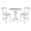International Concepts 36-in Solid Wood Round Ext Dining Table w/ 2 Counter Height Stools - White