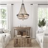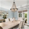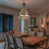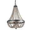 LNC Mocha 6-Light Distressed Grey Wood and Brushed Black Beaded Chandelier