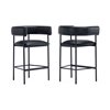 Manhattan Comfort Onda Black Vegan Leather Upholstered Metal Counter Stool