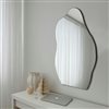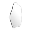 Elevate your decor with this 22 by 32-in mirror that features a sleek and curvaceous design. Encased in a 0.5-in deep black wood frame, this mirror is crafted with 4-mm thick high-quality HD glass to ensure a crisp, clear reflection. Its modern organic silhouette adds a touch of sophistication to any room, from bathrooms to living areas, while effectively brightening and expanding the space. Built for durability and easy installation, the Delphine mirror comes ready to hang either vertically or horizontally, making it a versatile and stylish addition to your home.