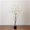 Enjoy the wonders of the majestic spring awakening with this artificial cherry blossom tree. Incredibly lifelike cherry blossom blooms adorn a slim, brown trunk in a rhythmic melody of foliage for a full look that will instantly transform your home into the best of Japan. The flowers have shades of white for a feminine touch. Standing 6-ft from a nursery planter (included in height), curate in tight areas. Perfect for bedrooms, bathrooms, awkward corners, or kitchen nooks.