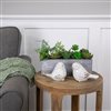 Do you have a brown thumb? Then this artificial mixed succulent plant is perfect for adding a splash of fall colour to your home. The succulent arrangement looks great as a part of your home décor when added to your tables or vases. This decorative plant is great to use for the holiday season or any other special occasion that calls for a little cozy embellishment. Features. It features six types of succulent plants. It comes in a weathered grey rectangular planter box. Recommended for in Door use only—if using outdoors place under a covered area. Dimensions: 4-in H x 12-in W x 4.5-in D. Material(s): plastic/MDF (medium-density fibreboard)/foam