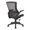 Screen back manager's chair in black faux leather seat with PU padded flip arms and silver accents