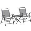 Outsunny 3-Piece Light Grey Metal Frame Folding Bistro Set w/ Glass Top Table