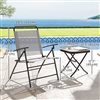 Brighten your outdoor space with the Outsunny 3-piece patio set, a charming bistro, or a chic lounge addition for small spaces. These outdoor table and chairs can be folded to save space when not in use. Powder-coated steel frames offer a strong patio table and chairs. Featuring a breathable mesh seat, adjustable back, and supportive curved armrests, this balcony furniture set is a stunning and cozy corner for friend hangouts, daily talk, and sunset viewing.
