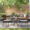 - The outdoor chairs' seats and backrests are crafted from PE wicker, offering UV resistance and durability against light water exposure while maintaining an appealing appearance