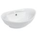 Pretty oval porcelain vessel, oval shaped with raised ends. With overflow and single hole pre-drilled for faucet (not included). Durable and easy to clean. Full warranty for the first twelve months.