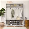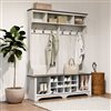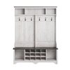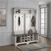 Prepac Farmhouse 60-in Hall Tree w/ 12 Shoe Cubbies + 2 Boot Cubbies and 6 Double Coat Hooks - Washed White