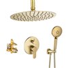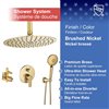 RAINLEX 10-in 1-Handle 2-Spray Round Showerhead Rainfall Shower Faucet with Valve in Brushed Gold