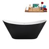 Streamline 67-in Glossy Black Freestanding Oval Bathtub and Tray w/ Polished Brass Centre Pop-Up Drain - 53-gal.