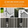 - Metal tool shed for storage, hobbies, gardening, and pet shelter. Neutral design fits any backyard or garden decor