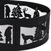 Capture the wild beauty of the great outdoors with this heavy-duty steel campfire ring. Featuring a 360-degree design and a black finish, this firepit ring has an intricately carved design of a rugged outdoor scene with forest plants and creatures. Its open design makes it wonderful for roasting marshmallows and hot dogs over an open fire. This durable bonfire fire pit is made of dependable steel for a long-lasting product life. Plus, it is easy to assemble. Simply connect the four pieces together and the fire ring is ready to use. Its lightweight design makes it easy to move from place to place in the backyard. It’s also easy to pack up and take along during the next camping trip or day trip. This unique backyard fire pit makes a wonderful gift for the hunter, outdoorsman, or fisherman in anyone's life.