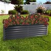 Grow your favourite vegetables, flowers, herbs, and more, or create your own compost system in your backyard or garden with this durable, steel, stand-up, raised garden bed. This large, rectangular raised garden bed spans 71 inches in width, allowing you to plant multiple different kinds of plants at once. The large, spacious area is sure to promote healthy roots, better drainage, and create a beautiful focal point wherever placed. Also, this planter box is sure to provide a comfortable standing position as you tend to your plants due to its height in your yard or garden. This elevated planter box is made from galvalume steel for increased durability and is resistance to rust and most weather conditions. Galvalume steel is made from a combination of zinc, aluminum, and silicon and is proven to last longer in wet conditions than galvanized steel. All galvanized steel hardware required for assembly is included with this garden bed. Also included is one rubber edge trim piece.