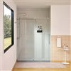 This premium quality glass shower door is just what you need to make your home look beautiful and sleek. The outstanding design style helps to increase the overall look of your bathroom and provides the best support too. The frameless 56-60-in W x 76-in single sliding shower door allows you to adjust the sizing and adjust as you see fit. The 8-mm thick clear tempered shatterproof glass panels provide you with the needed protection every time. The doors can be repositioned either to the left or right to your requirement. Premium stainless-steel fittings provide optimum protection against water damage.