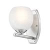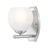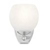 Brushed nickel finishing softens the modern effect of this chic 1-light bathroom vanity wall sconce. Perfect for a variety of settings, it features clean, sleek curves in a rounded shade with a feathered opaque white swirl design that offers understated artisan character. It's a lovely addition to modern, mid-century and organic coastal decor motifs.