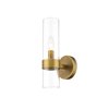 A warm rubbed brass metal frame offers a hint of drama to this distinctive Datus 1-light wall sconce. Contemporary vibes infuse an easy-living attitude with prominence in a sleek design featuring a slender clear glass cylinder shade mounted to a gorgeous rubbed brass finish solid steel frame and mount. Bring ambient lighting to a hallway, bath space, or main living area with this sconce with a minimalist yet impressionable flavour.