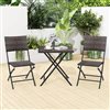 Experience the perfect blend of style and durability with this 3-piece patio bistro set, designed for optimal outdoor enjoyment. Handcrafted from premium mixed brown PE rattan, the outdoor dining set features quick-folding chairs and table with ergonomic backrests and breathable seats. Built with a reinforced metal frame and non-slip foot pads, each chair offers strong support for long-lasting relaxation. Lightweight and space-saving, this charming set transforms any backyard, balcony, or poolside into a cozy retreat you’ll love.