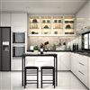 This pub table set features a contemporary marble-look veneer table and dark brown legs. Conveniently sized, this set is great for simple dining for two or it can provide casual seating for refreshments in a bar area of your home.