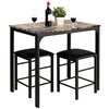Costway Brown Counter Height Dining Set with Faux Marble Table and 2 Stools