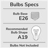 - Maximum 60 W (E26) per light bulb or equivalent LED bulb (bulbs not included)