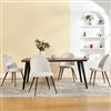 Transform your dining area with this sleek 5-piece dining set featuring a robust walnut table paired with comfortable upholstered chairs. The combination of walnut and modern metal legs creates a stylish, industrial look perfect for any dining space. The ergonomic design of the chairs ensures comfort during extended meals, while the sturdy table surface offers durability for everyday use. Whether for family gatherings or casual dinners, this set blends functionality and modern elegance seamlessly.