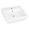It features a rectangle shape. This vessel is designed to be installed as an above-counter vessel. It is constructed with ceramic. This vessel comes with an enamel glaze finish in white colour. It is designed for a 1 hole faucet.