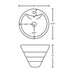 It features a round shape. This vessel set is designed to be installed as an above-counter vessel set. It is constructed with ceramic and it comes with an enamel glaze finish in white colour. It is designed for a 1 hole faucet.