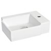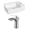 It features a rectangle shape. This vessel set is designed to be installed as a wall mount vessel set. It is constructed with ceramic and it comes with an enamel glaze finish in white colour. It is designed for a 1 hole faucet.