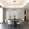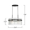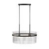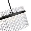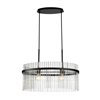 The Ava Collection oval chandelier enchants with its delicate arrangement of circular glass rods, elegantly suspended on a sleek black frame. Its versatile design harmonizes beautifully with both circular and rectangular tables, adding a touch of refined glamour to any room. This model can easily be adjusted in height to suit your needs.