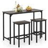 Costway 3‑Piece Grey Counter Height Table Set with Footrests Rectangular Pub Table & Chairs