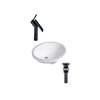 DROP Bath and Kitchen 21.7-in W White Oval Ceramic Bathroom Undermount Sink Set with Black Faucet and Drain