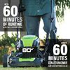 - NEVER STOP CUTTING: Compatible with all Greenworks 80V batteries for up to 45 minutes runtime; batteries recharge in 30 minutes each.
