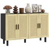 HOMCOM 47.2 W x 29.9-in H Black/Natural Boho-Style Sideboard w/ 4 Rattan Doors