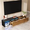 Homy Casa 67-in W 2-Drawer Black/Natural Wood-Look Modern TV stand w/ Glass Shelves and LED Light