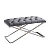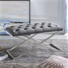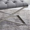 - Design: bench in grey fabric seat with nailhead accents and silver cross base