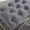 This Imperial tufted double bench is not just comfortable but sure to make a statement as well. Made using premium quality metals and fabrics, it is covered in a smooth grey finish. Sure to complement any interior setting, this seat is upholstered with tufting that provides comfort. This pouf is accentuated with nailhead trims and can comfortably seat up to two people.
